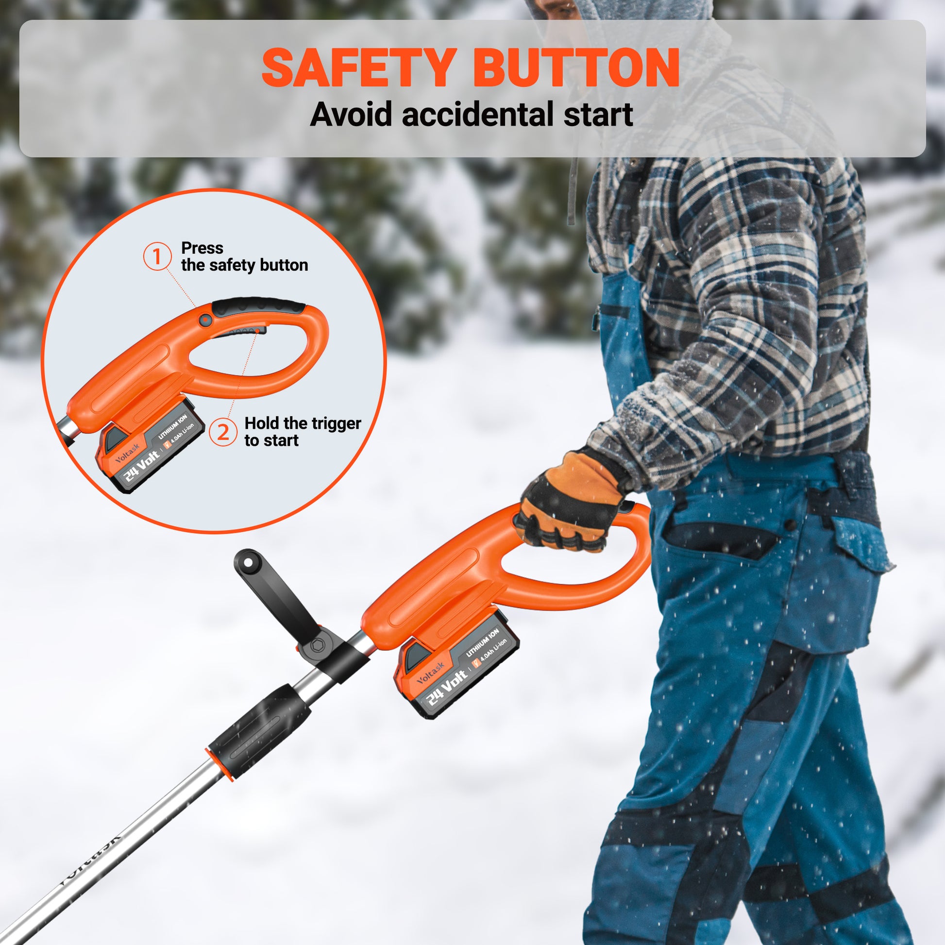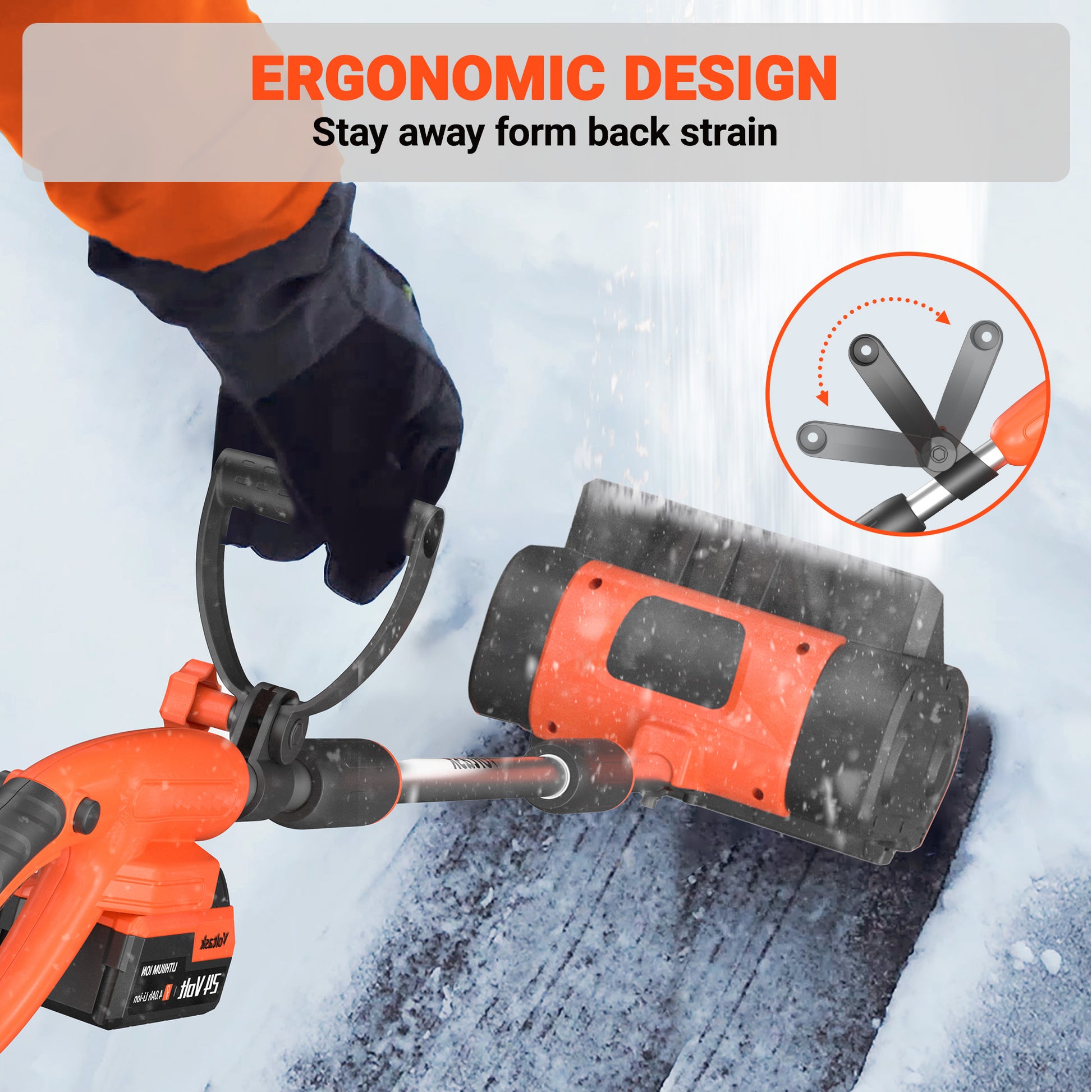 - ERGONOMIC & LIGHTWEIGHT DESIGN - Weighing only 7.3 lbs with dual adjustable handles, it reduces back strain by 80%. High-strength aluminum shaft and impact-resistant polymer housing withstand -22°F temperatures and accidental impacts. One-touch safety switch prevents accidental starts, while non-slip grips ensure control on icy surfaces. Perfect for seniors, homeowners, and urban users – easily lifts for car trunk storage or rooftop use.