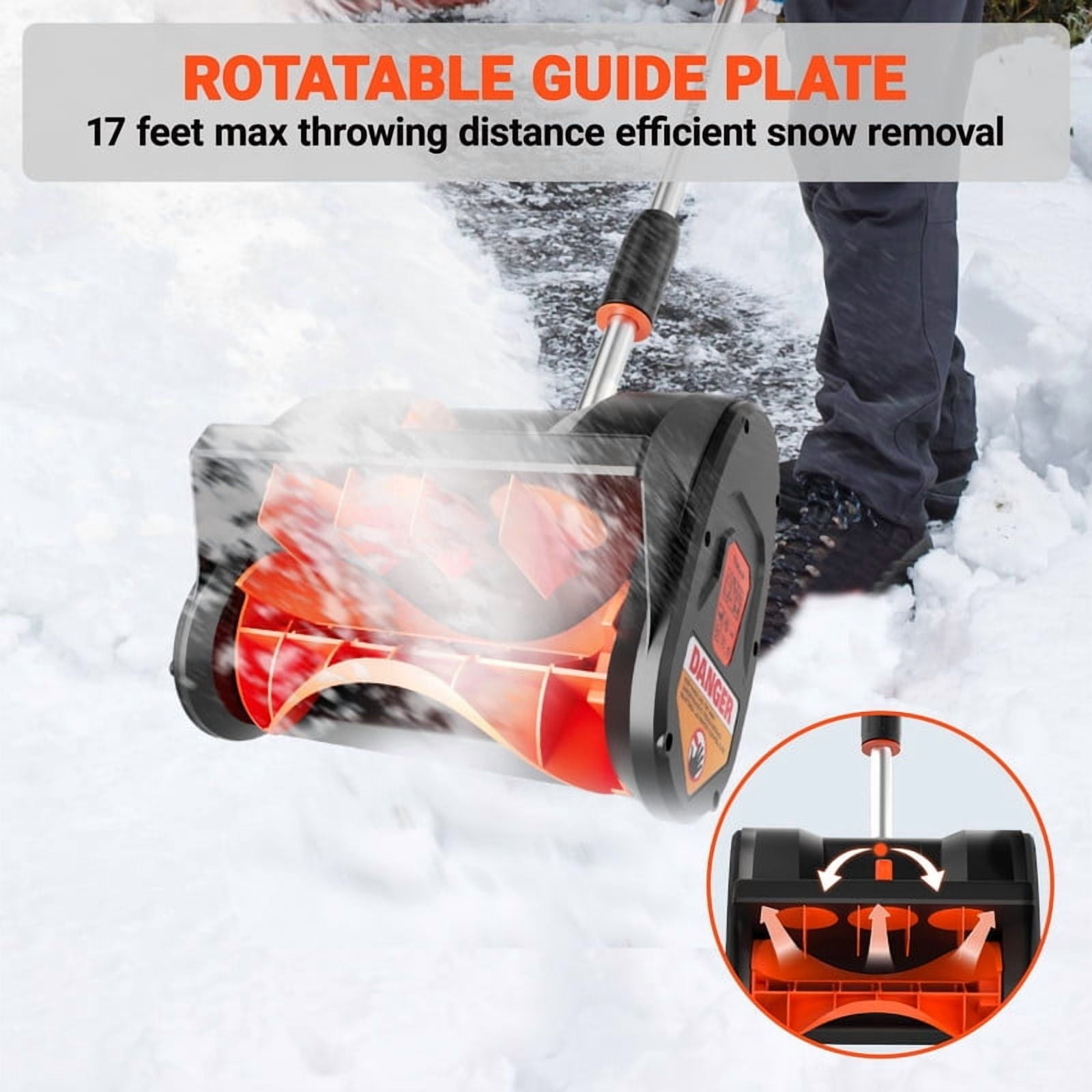 Equipped with a robust 500W motor and 24V 4.0Ah lithium battery, the VOLTASK cordless snow shovel delivers consistent power without cords or gas. Ideal for small to medium snow clearing tasks on driveways, decks, and sidewalks. With a maximum snow depth capacity of 6 inches and a 12-inch-wide clearing path, and a maximum throwing distance of 17 feet, it helps you power through winter faster and cleaner.